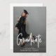 Anúncio de Formando de Foto de Graduação de Script Branco *As cores de texto e backers de designs são personalizadas em várias opções e formatos diferentes