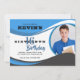 Seu adolescente vai adorar este convite de foto moderno com ondas azuis, brancas e pretas e uma janela de foto no canto. (<a href='https://www.freepik.com/free-photo/happy-teen-with-books-looking-at-camera_1370876.htm'>Criado por Freepik</a>). <br/><br/>O cartão é fácil de personalizar com sua redação, fonte, cor da fonte, opções de forma de papel e escolha de seis tipos de papel.<br/><br/>Não é exatamente o que você está procurando? Todos os nossos produtos podem ser personalizados para atender às suas necessidades sem custo adicional.<br/><br/>Basta entrar em contato conosco em askpixieprints@aol.com.<br/><br/>Produtos coordenados disponíveis: Basta perguntar!