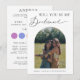 Compartilhe os detalhes do seu casamento com suas damas de honra com este cartão elegante, apresentando letra elegante, foto arqueada e detalhes editáveis. Personalize facilmente clicando na opção "personalizar".