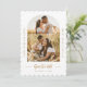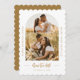 Anuncie seu casamento próximo à família e amigos com nosso cartão de anúncio de casamento save the date com imagens em forma de arco e letras à mão elegantes em uma folha de ouro falso.