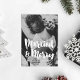 Uma tipografia de pincel moderno para esta coleção de cartões de fotos de feriados personalizáveis para recém-casados.