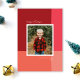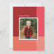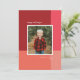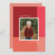 Um design moderno e limpo com um plano de fundo em bloco de cores em vermelho, rosa e coral e uma única foto. Uma fonte de estilo manuscrito combina com uma fonte simples para o nome da família. Troque a mensagem e a cor no verso para a sua!