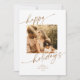Compartilhe a alegria das festas com nosso cartão de foto de férias personalizável, perfeito para enviar votos calorosos a familiares e amigos. Com um design elegante que destaca sua foto favorita, este cartão é totalmente personalizado com sua mensagem de Natal. Crie uma lembrança que capture a magia da temporada com este cartão de foto festivo e elegante!
