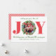 Envie paz, amor e alegria com este moderno cartão de Natal com um design festivo "ALEGRIA", onde sua foto é enquadrada dentro de uma grinalda de Natal em aquarela. Listras de canas de Natal vermelhas no verso adicionam um toque divertido e coordenado. A elegante escrita verde e elementos de pinheiro unem tudo para uma saudação de Natal alegre e moderna.