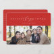 Este cartão de foto elegante apresenta um tratamento do tipo Felicidade nas Festas em branco contra um fundo vermelho. A parte de trás é um vermelho listrado coordenado. Este cartão de Natal é a maneira perfeita de enviar saudações para familiares e amigos.
