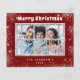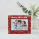 Um clássico fundo vermelho decorado com brilho de prata falso e estrelas cintilantes. Personalize e adicione sua própria foto, nome e ano. Com o texto: Feliz Natal. Uma sobreposição de janela sobre sua foto.