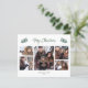 Compartilhe suas memórias com familiares e amigos com este cartão de férias de pinheiros de inverno com orçamento. Ele apresenta as palavras "Feliz Natal" em texto editável para você personalizar. Personalize com cinco de suas fotos favoritas. O cartão reverte para um belo padrão de pinheiros de inverno em aquarela.
