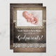 Cartão de foto de proposta de padrinhos rústico com madeira antiga e renda de aniagem "Você será meu padrinho?"