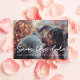 Salvar a data: compartilhe a alegria do seu amor e noivado com este simples cartão de foto Save the Date personalizado. Mensagem e cor do texto totalmente personalizáveis.