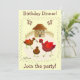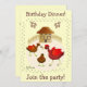 Ilustração de 3 galinhas jogando um verme no quintal. Atrás está a sua linda casa de galinha com uma cerca. Uma faixa de frango pé=impressões rodeia a imagem, e um aglomerado de ovos marrons decoram o cartão. Personalize sua mensagem na frente e no dentro.Interior: outro frango e uma faixa de impressões de pé adicionam charme ao seu convite.