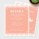 Use este belo cartão de detalhes do estilo picado de papel para adicionar informações adicionais aos seus convites de casamento. A parte de trás apresenta um design floral. Perfeito para um casamento mexicano tradicional ou moderno.