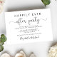 Cartão de cerimônia legante para uma festa pós-festa após sua cerimônia de casamento ou recepção. A frente apresenta "Felizmente Nunca Depois da Festa" em uma mistura de simples tipografia e um roteiro de caligrafia por na moda com picos. Personalize seu convite de festas posterior e adicione seus nomes em um script semelhante a assinatura.