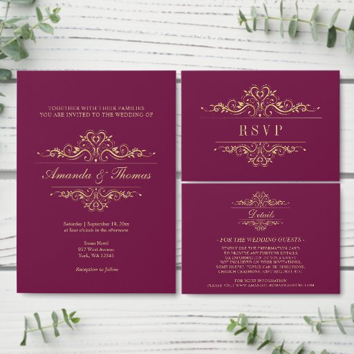 Burgundy with golden frame chic wedding Criado por Brankica B