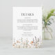 Preencha o seu conjunto de papelaria do casamento com o nosso Cartão de Alojamento de Detalhes do Casamento de Pêssegos Selvagens — uma adição encantadora que se harmoniza com a beleza da sua celebração. Este cartão apresenta uma fronteira inferior adornada com um campo de flores silvestres abraçadas por pêssego, acrescentando um toque de elegância natural aos seus detalhes de casamento. Personalize o cartão com seus detalhes específicos de casamento para garantir que seus convidados tenham todas as informações necessárias para o dia especial. Elevem o charme do seu conjunto de casamento com o Cartão de Alojamento de Detalhes do Casamento de Pêssegos Selvagens — uma combinação perfeita de praticidade e atração estética.