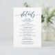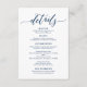 Cartão de gabinete com detalhes de casamento perfeito, em azul Marinho.