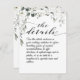 The Details, um cartão de cerimônia de luxo com cor d'água, contendo peonias brancas intricadamente detalhadas e videiras verdes de eucalipto prateado com uma elegante caligrafia de palha longa anunciando seus detalhes de casamento.