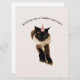 Desejando-lhe um aniversário perfeito - um cartão com gato siamês bonitinho em chapéu de festa.