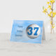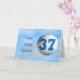 Um cartão de diversão excelente para um golfista ou uma ocasião de golfe. Uma bola de golfe voando pelo ar com 37 escritos.