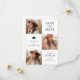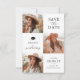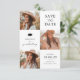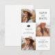 Cartões elegantes de save the date de formatura, primorosamente desenhados para apresentar três das suas fotos favoritas do graduado, lindamente inscritos com o título 'salve a data' e um gorro de graduação. Personalize esses cartões com o nome deles, a data e o local.