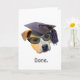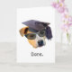 Um cachorro vestindo um boné de formatura e óculos de sol com as palavras "Feito" neste cartão de graduação engraçado. Clique em personalizar para adicionar suas próprias palavras.