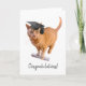 Um gato laranja graduado tem um diploma enrolado. Envie este cartão de gatinho fofo para felicitar o seu estudioso favorito.