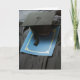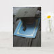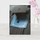 Para o formando! Cartão com um quadro, vestido e programa azul.