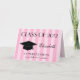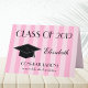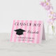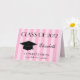 Esta placa de graduação de segundo grau divertida apresenta um pano de fundo de faixa rosa para um boné de formatura. A Classe de ano aparece no topo da design que pode ser personalizada com o nome do formando. As palavras "PARABÉNS na graduação do seu segundo grau" aparecem abaixo do boné de formatura. Dentro encontrará um bom sentimento de graduação de segundo grau. Copyright Kathy Henis