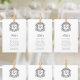 Placa de Gráfico Sentado do Monograma de Crest Vintage com Nomes de Convidado, em preto clássico e branco. A crista de vintage do ornamentado molda o elegante script entrelaçou as iniciais da noiva e do noivo. Encontre produtos correspondentes na coleção, ou envie-me mensagem através do Zazzle Chat para mais produtos, outras vias coloridas ou ajustes de design.