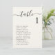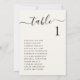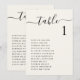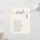 Cartões de assentos de mesa de natas-claras modernas e chic, com "mesa" em um roteiro de na moda com baloiços, o número da mesa em uma tipografia elegante de serifa e o nome de seus convidados em uma simples tipografia. Crie cada gráfico de assentos de mesa individualmente e adicione ao seu carrinho de compro um de cada vez e, em seguida, faça o check-out assim que todas as mesas estiverem no carrinho.