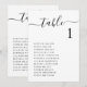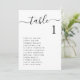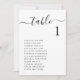 Cartão chic de assento de mesa de casamento com "mesa" em um roteiro de na moda com pestanas, o número da tabela em tipografia elegante de serifa e os nomes de seus convidados em uma simples tipografia moderna. Crie cada gráfico de assentos de mesa individualmente e adicione ao seu carrinho de compro um de cada vez e, em seguida, faça o check-out assim que todas as mesas estiverem no carrinho.