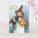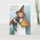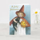 Cartões de Halloween de moda antiga vão agradar a todos. Perfeito em dar a todos na sua lista. Torne este ano especial com cartões de saudação exclusivos. Saudações de Halloween. Menina adorável vestida de feiticeira segurando um gato preto e abóbora.