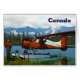 Um piloto de arbusto fica perto do seu flutuador de Havilland Canada DHC-2 Beaver na costa de um lago no extremo norte; montanhas e árvores estão à distância. O texto "Canada" também é exibido. Esta imagem foi derivada, em parte, de uma foto do Serviço de Pesca e Vida Selvagem dos EUA.