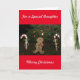 Cartão de Saudação de Natal Do Homem Gingerpão Bonito. Personalize fora da carta para ler Godchild, Son, tia, avô, etc. A frente de Card tem uma cena de Natal festiva com um Gingerpão feliz segurando um presente envolto, Candy Canes e coloridas fora das árvores de Natal. Dentro tem mensagem especial e canas cor-de-rosa e azul, e doces vermelhos e brancos. Personalize o dentro da placa com o nome da sua família. Deixe a dentro de mensagem do cartão ou exclua e insira a sua própria mensagem, se desejar. A parte de trás da carta tem trabalho de arte de árvore de Natal verde, antiquada, com estrela amarela, canas doces, e JOY escrito em uma saia vermelha com folhas e frutos vermelhos e a redação, Peace on Earth. Um cartão de Natal adorável para enviar para a família e amigos. Fotografia original, Trabalho de arte e Verse Say por TamiraZDesign.