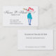 design de ilustração de cartão de visita de tendências elegantes personalizadas, com cabeleireiro vermelho, segurando um secador de cabelo numa mão e um pincel na outra. Excelentes, penteadores, cabeleireiros e cabeleireiros.design de frente e verso para maximizar seus esforços de publicidade e de rede e um lugar para os compromissos dos clientes. Fácil de personalizar com suas próprias informações.