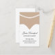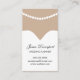 Cartão de visita minimalista, chic e moderno. Vestido de casamento e colar de pérolas sobre pele justa. Fontes elegantes em preto.
