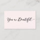 Escrito elegante de caligrafia negra com as palavras "você é bonita" em fundo rosa. Cartão perfeito para profissionais de moda e beleza, compras nojentas e estilistas pessoais. Para obter materiais de marketing, design personalizado ou pesquisa de logotipo adicionais, entre em contato comigo em maurareed.designs@gmail.com e eu responderei dentro de 24 horas. Para o transporte, o estoque de papelão inquirirá e os preços, entre em contato direto com a Zazzle.