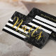 Unhas Salon Modern Stripes Elegantes Cartões de Compromisso Floral Preto.