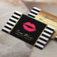 Makeup Artist Red Lábios Modernos Black White Stripes Cartões de Compromisso.