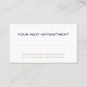 Certifique-se de que os seus clientes nunca percam uma reunião com os nossos cartões de lembrete de compromissos profissionais simples. Com um esquema de cores azul e ouro para marinhos eternos, este cartão personalizável é perfeito para advogados, escritórios de advocacia, planejadores imobiliários, consultores financeiros e qualquer empresa de serviços profissionais. A design minimalista proporciona amplo espaço para detalhes essenciais, enquanto a tipografia clássica expele sofisticação e confiança. Quer você esteja em direito, finanças ou outros serviços profissionais, este cartão versátil pode ser adaptado à sua identidade única de marca. Saia com um design que reflita seu compromisso com a excelência e o serviço personalizado.