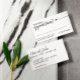 Cartão de compromisso minimalista em branco com texto preto e uma seta elegante. Adicione as informações de contato à parte traseira do seu próximo cartão de compromisso prático.