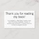Uma das coisas mais difíceis que um escritor deve fazer é pedir críticas. Tocar este cartão em cada livro que você vende pessoalmente pode tornar isso um pouco mais fácil, já que muitos leitores não percebem o quanto significa para um autor ouvir que amavam seu livro. Esta design elegante encorajará os leitores a seguirem em frente e permitirá que você seja atencioso sem ter que pensar demais. ;) Afinal, alguns obrigados percorrem um longo caminho.
