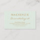 Cartão Simples Moderno de Nomeação do Salão Verde de Pastel. Um design moderno minimalista com tipografia de ouro em um elegante fundo pastel verde. Digitação de sans serif para o nome do funcionário e informações de salão; script manuscrito para o título do trabalho.