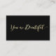 Um roteiro elegante de caligrafia dourada com as palavras "você é bonita" em fundo negro Cartão perfeito para profissionais de moda e beleza, compras nojentas e estilistas pessoais. Para obter materiais de marketing, design personalizado ou pesquisa de logotipo adicionais, entre em contato comigo em maurareed.designs@gmail.com e eu responderei dentro de 24 horas. Para o transporte, o estoque de papelão inquirirá e os preços, entre em contato direto com a Zazzle.