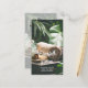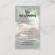 Um na moda spa cartão de visita com um design de quadro branco transparente na frente e mais detalhes na parte traseira apresentam um design de flores, folhas, óleo e toalhas. Personalize esta cartão de visita para ser exclusivamente sua.
