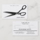 Na frente, este design apresenta uma tesoura e um pente modernos e surpreendentes, desenhando um motivo atraente, preto e branco. Isso automaticamente sinaliza sua profissão, e seu nome é bem ligado a ela.