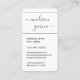 Faça uma primeira impressão memorável com um na moda e um cartão de visita único vertical. Todo texto é simples de personalizar. Um lembrete de compromisso opcional na parte traseira é facilmente excluído se não for necessário. O simples design de stripe minimalista com o nome da tipografia de script preto apresenta suas informações de contato com o estilo elegante chic. Adequado para empresários freelance, pequenas empresas ou profissionais de escritório corporativo, este cartão simples e mínimo é uma tendência e eterno. Ele é apresentado aqui como um artista maquiador, cabeleireiro ou cartão de visita de salão, mas pode ser facilmente personalizado para qualquer profissão.