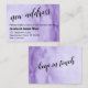 Mantenha seus amigos e familiares atualizados com seu novo endereço usando esses cartões de gabinete bonito e sutis. O fundo foi coberto por uma lavagem em massa com aquarelas, apresentando tons de roxo rico. Sobre isso, coloquei gráficos bonito e casuais de tipografia que lia "novo endereço" na frente e "manter-se em contato" no verso, usando uma fonte moderna de chic script. Use os campos modelo para adicionar seus detalhes e personalizar este design para seu próprio uso. Se você quiser alterar a versátil fonte sans-serif que usei para o texto editável ou quiser reposicionar qualquer elemento, clique no link para personalizar a placa ainda mais. Você pode até reposicionar a camada de aquarela para tornar algumas áreas mais escuras ou mais claras, se preferir; faça deste design! // 99 // Concebida por Melody Watson para Paper Muserie.