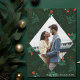 Os beijos de Natal e os desejos de Natal abundam com esta carta de imã de condecoração festiva e romântica. Preencha o diamante elegante com sua foto favorita de beijo de casal e adicione sua mensagem Xmas personalizada em branco sobre o ímã verde botânico. Uma bela condecoração pende sobre a sua fotografia de beijo.