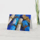 O natal festivo aparece no cartão azul de impressão de fundo.