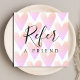 Cartão de referência quadrado moderno para profissionais de beleza. Legal design com ícones do rosa, totalmente personalizáveis.